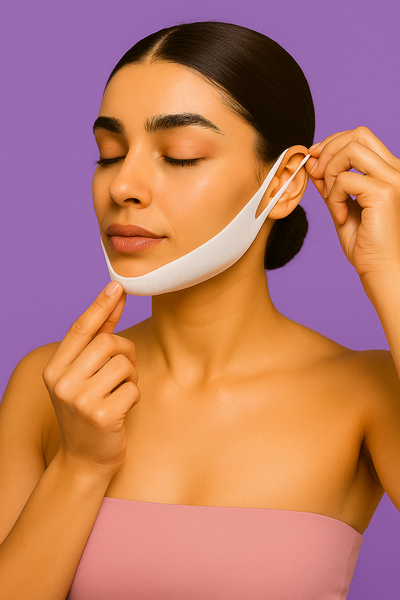 The Skinly Jaw-Lift Collagen Chin Strap works by boosting circulation, improving elasticity, and infusing collagen deep into your skin. Its firm yet gentle lift helps tighten and sculpt your jawline while hydrating and nourishing your skin giving you a firmer, smoother, and more defined look after every use.